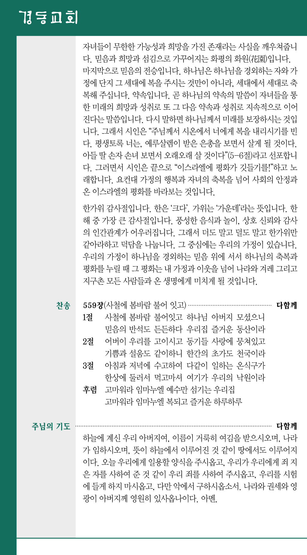 | 1046 | 2020-11-01 | 창조절 아홉째주일 | 살아 움직이는 하나님의 말씀 | 채수일 목사 |