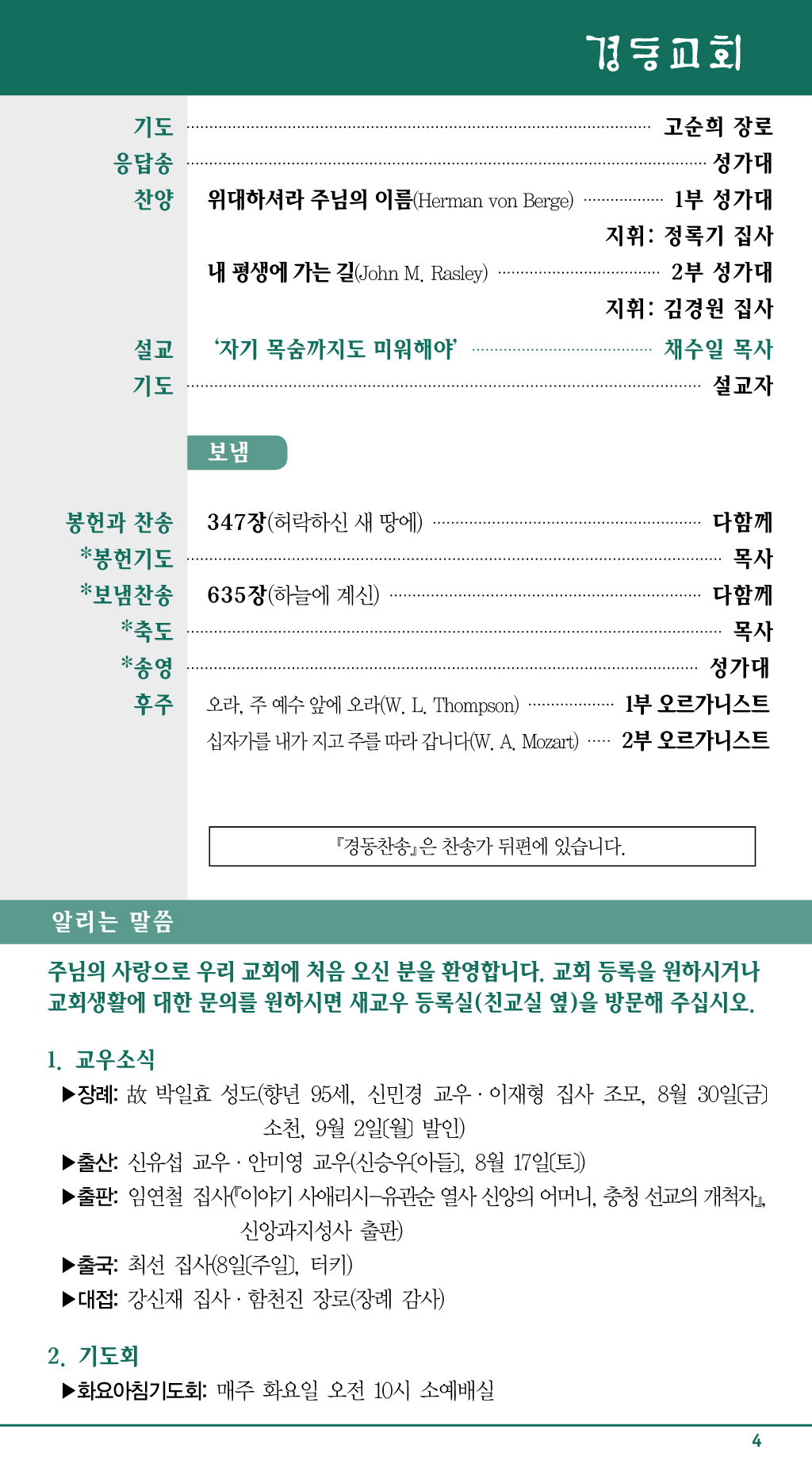 | 후주2부 | 십자가를 내가 지고 주를 따라 갑니다(W. A. Mozart) |