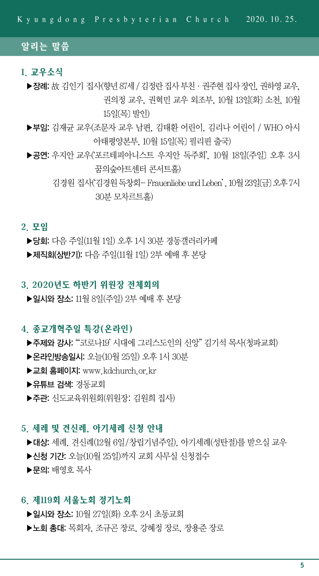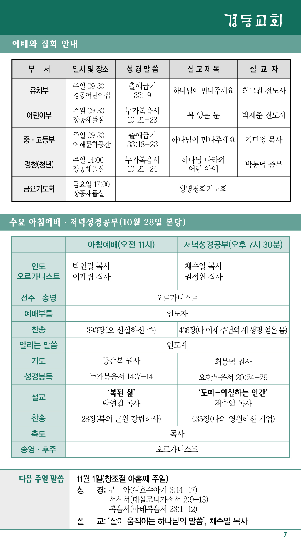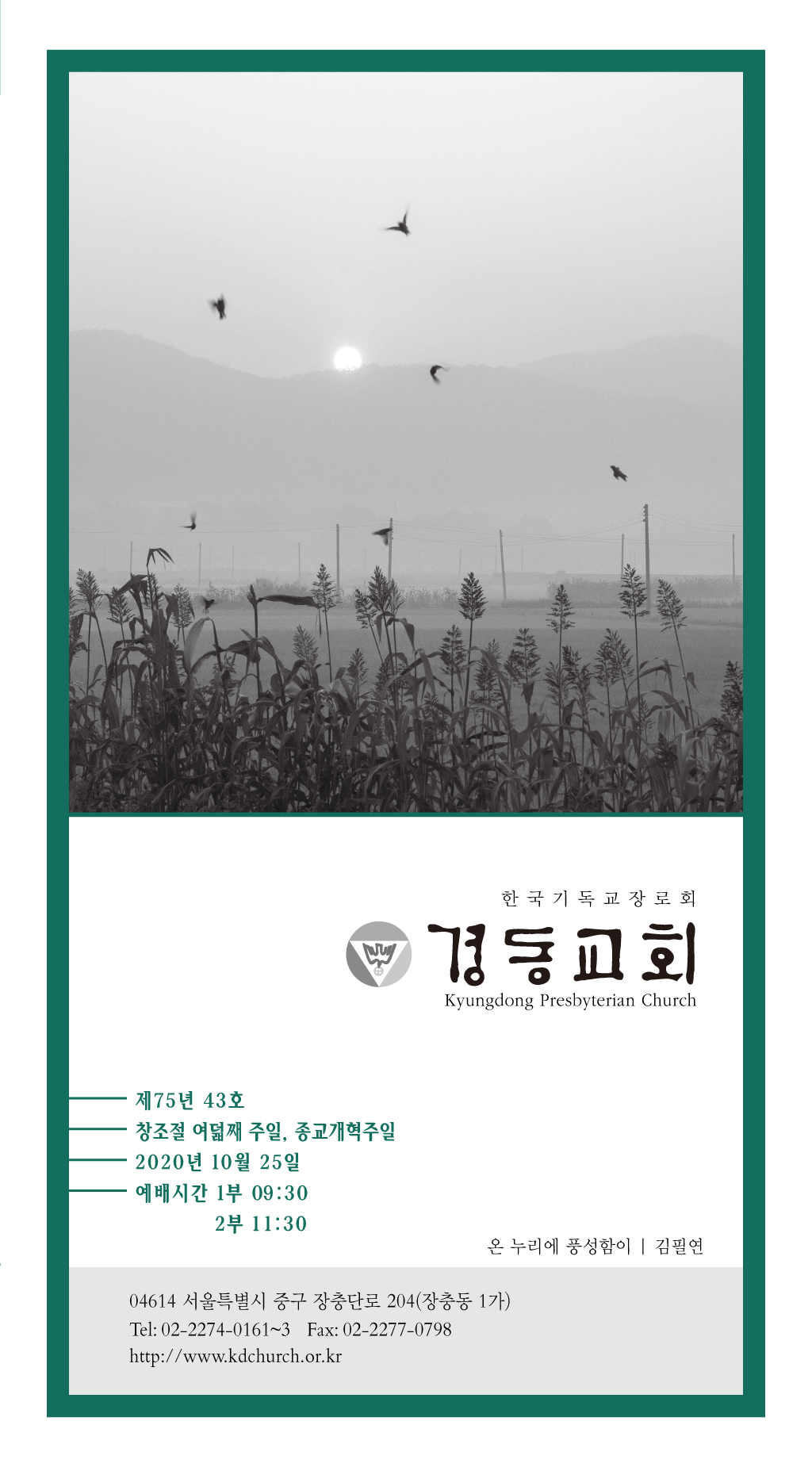 | 1046 | 2020-11-01 | 창조절 아홉째주일 | 살아 움직이는 하나님의 말씀 | 채수일 목사 |