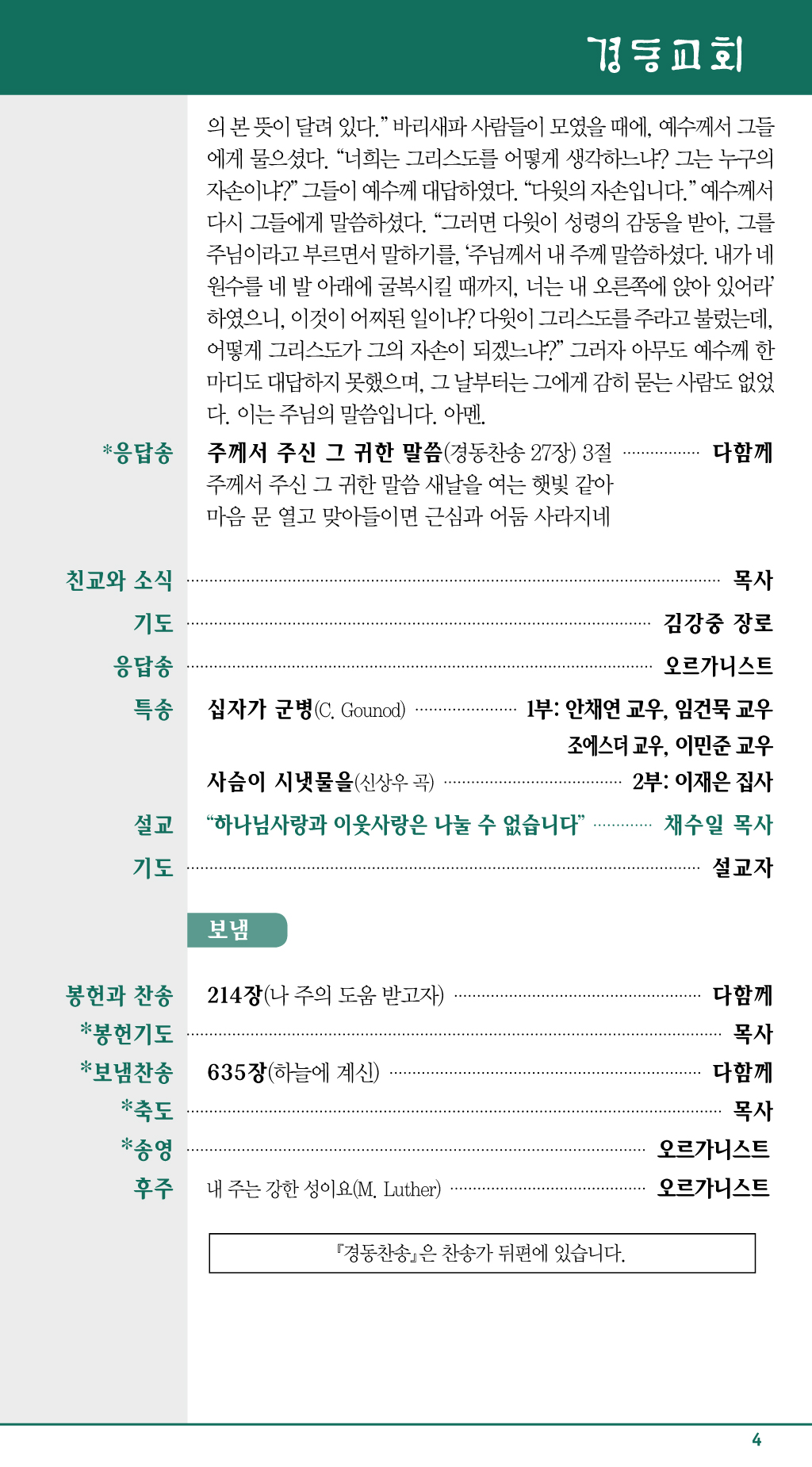 | 설교제목 | 하나님사랑과 이웃사랑은 나눌 수 없습니다 |