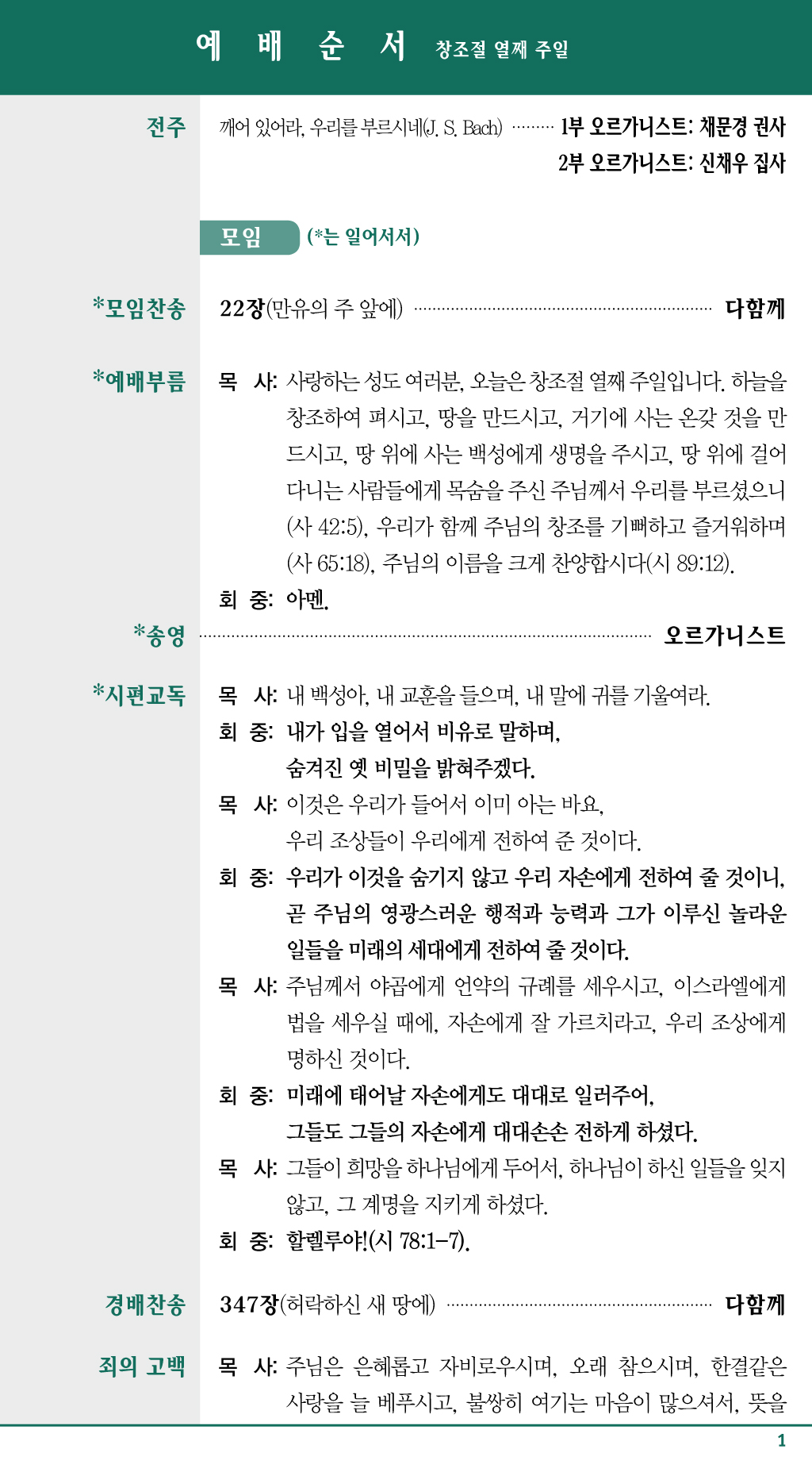 | 반주자 | 신채우 집사 |