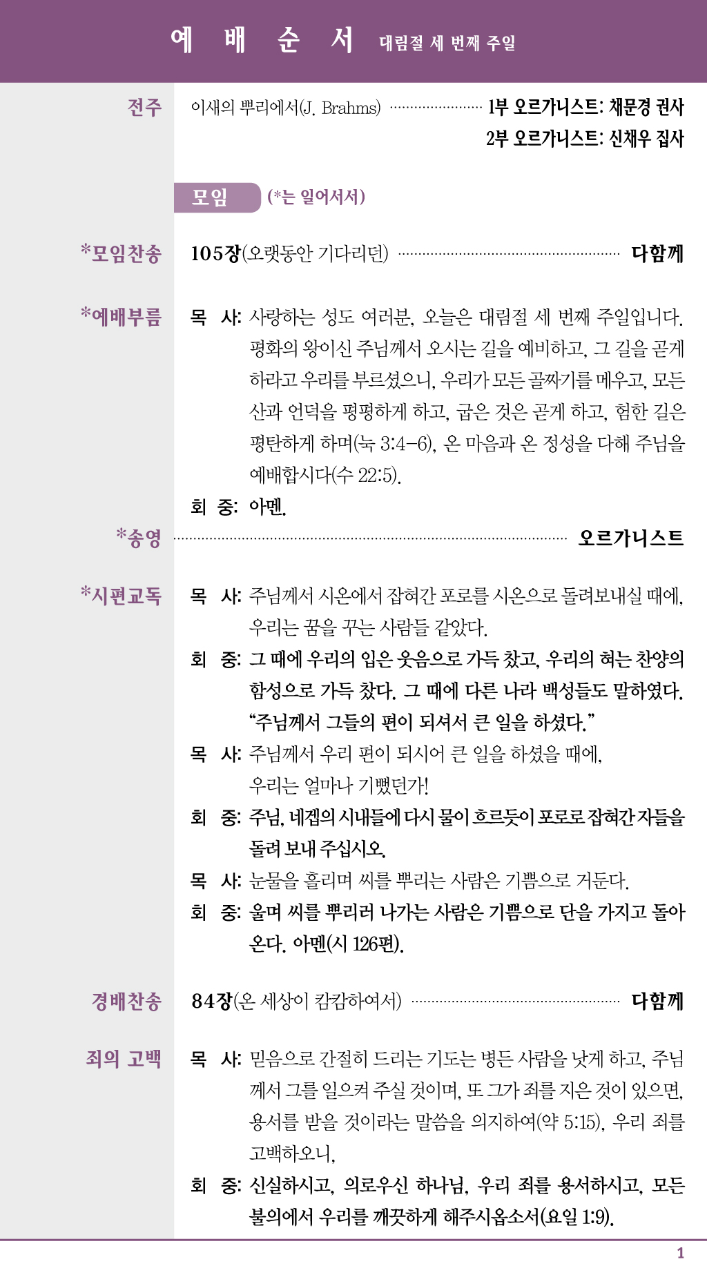 | 전주 | 이새의 뿌리에서(J. Brahms) |