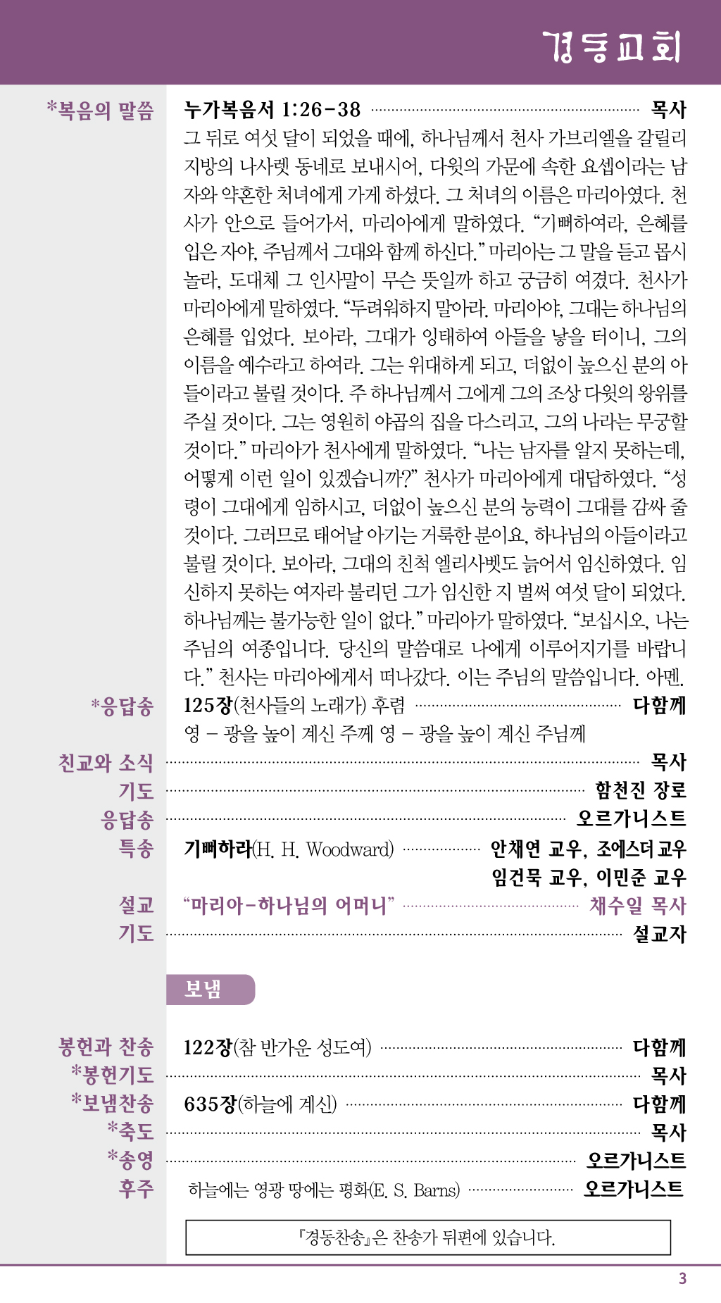| 성경구절 | 사무엘기하 7:1-7/ 로마서 16:25-27/ 누가복음서 1:26-38 |