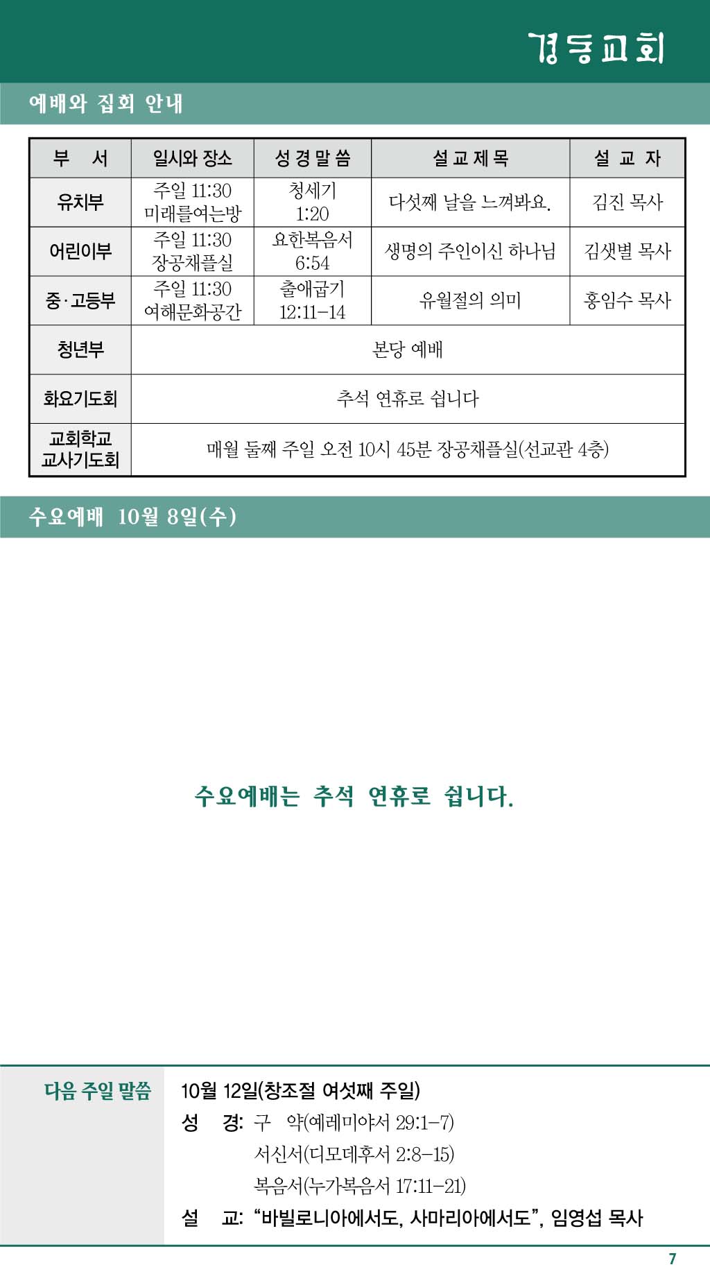 1316 | 2025-10-12 | 창조절 여섯째 주일 | 바빌로니아에서도, 사마리아에서도 | 임영섭 목사 |