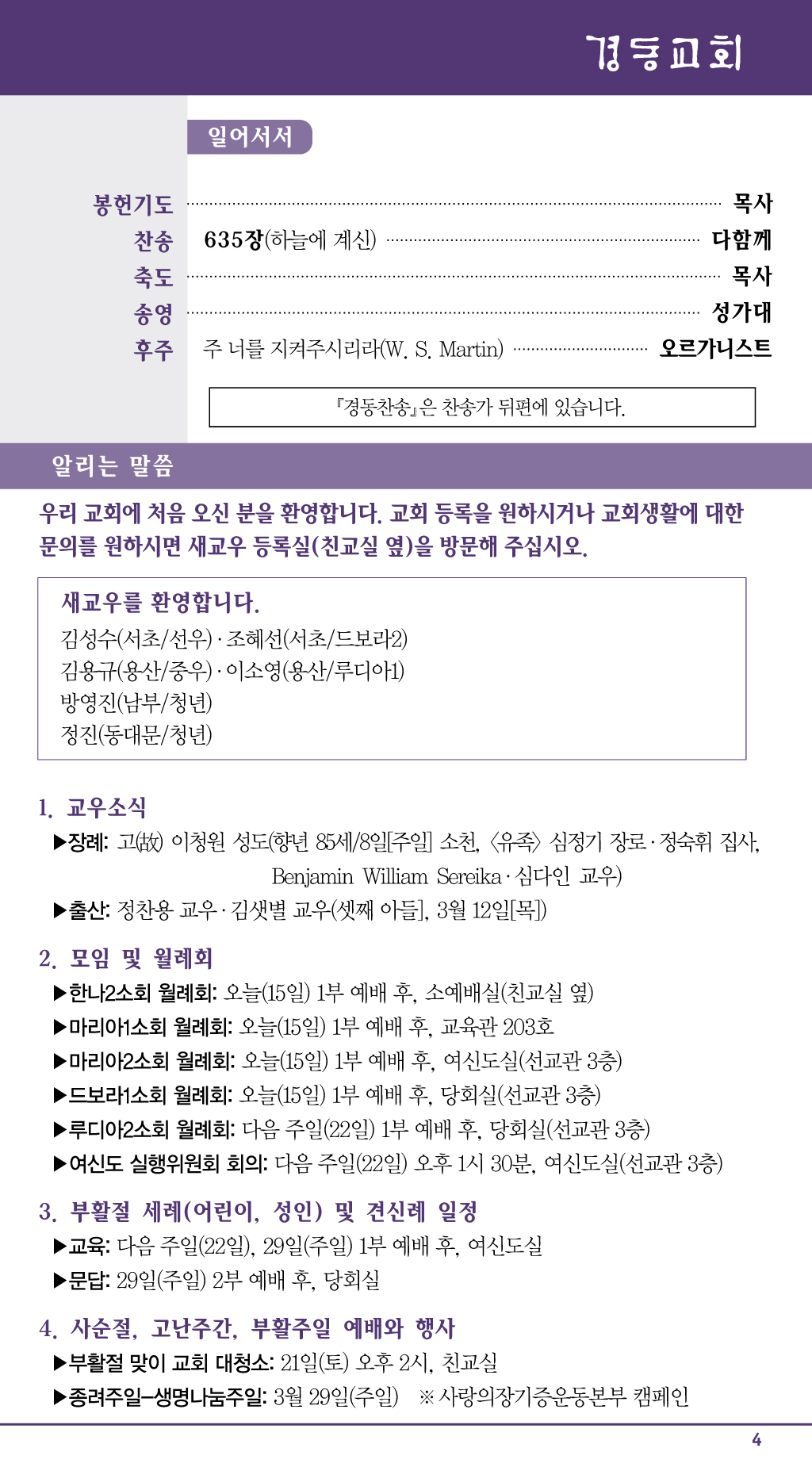 | 전주 | 오 주여,이 죄인을 불쌍히 보소서(D. Buxtehude) |